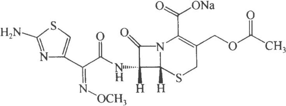 化學(xué)名稱:(6R,7R)-3-[(乙酰氧基)甲基]-7-[2-(2-氨基噻唑-4-基)-2-(甲氧亞氨基)乙酰氨基]-8-氧代-5-硫雜-1-氮雜雙環(huán)[4.2.0]辛-2-烯-2-甲酸鈉鹽。